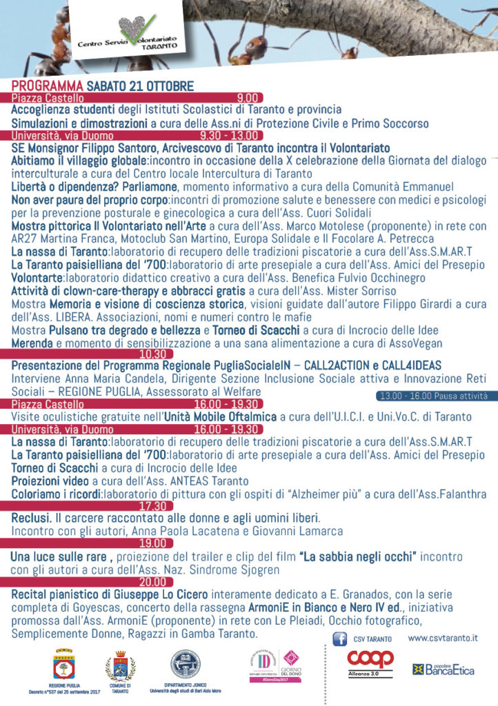 Programma del 21 ottobre 2017 – XIII Rassegna provinciale del Volontariato e della Solidarietà