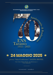 I festeggiamenti per il raggiungimento di questo traguardo si svolgeranno sabato 24 maggio a partire dalle ore 08.30 presso l’Hotel Salina di Taranto in Viale Unità d’Italia n. 648-650 – Via Mediterraneo n.1.