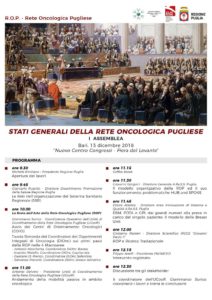 Si discuterà dello stato dell’arte della Rete Oncologica nel corso della giornata degli Stati Generali della Rete Oncologica Pugliese che si terranno mercoledì 13 dicembre a Bari presso il “Nuovo Centro Congressi – Fiera del Levante”.