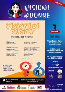 È il nuovo progetto di CarusTeatro Aps che, dedicato alla parità di genere, si articolerà in due intere giornate – venerdì 7 e sabato 8 novembre – con un nutrito programma di iniziative che si terranno presso la “CarusTeatro Home”, in via Risorgimento n.32 a Carosino (info 377.3286860).