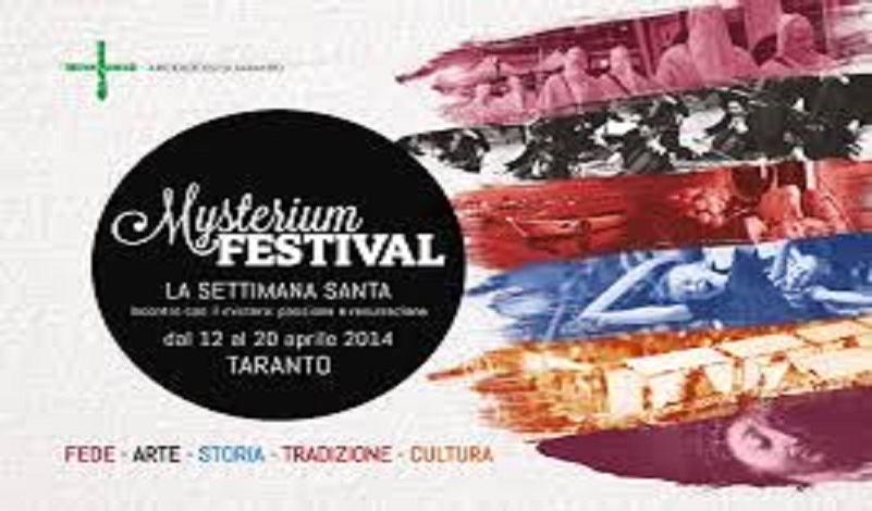 L’ Orchestra ICO della Magna Grecia, sotto l’alto patrocinio della Curia Arcivescovile di Taranto e in partenariato con Confindustria Taranto, Le Corti di Taras, Fondazione per la Cultura Taranto e Scorpione Editrice organizza dal 12 al 20 aprile p.v. la I° edizione del Mysterium Festival, una un’iniziativa caratterizzata da una grande sinergia tra tantissimi attori del territorio con il fine di realizzare una manifestazione che offre grandi momenti di cultura che impreziosiscono ulteriormente gli splendidi Riti della Settimana Santa tarantina pur non interferendo in alcun modo con i momenti liturgici tradizionali.