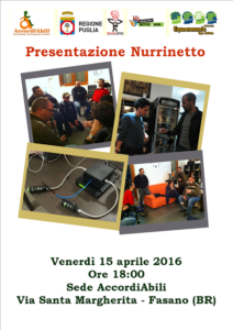 Quindi domani, 15 aprile, alle ore 18:00, presso la sede di AccordiAbili a Fasano in via Santa Margherita, il Nurrinetto sarà presentato e consegnato a Francesco Nurra.