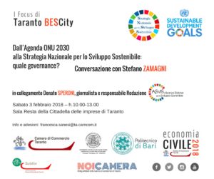 Ne parlerà alla Cittadella delle imprese di Taranto, sabato 3 febbraio 2018 dalle ore 10.00, Stefano Zamagni, economista e docente dell’Università di Bologna, nel corso di un Focus organizzato da Camera di commercio di Taranto, Politecnico di Bari e Centro di cultura per lo sviluppo “G. Lazzati”.
