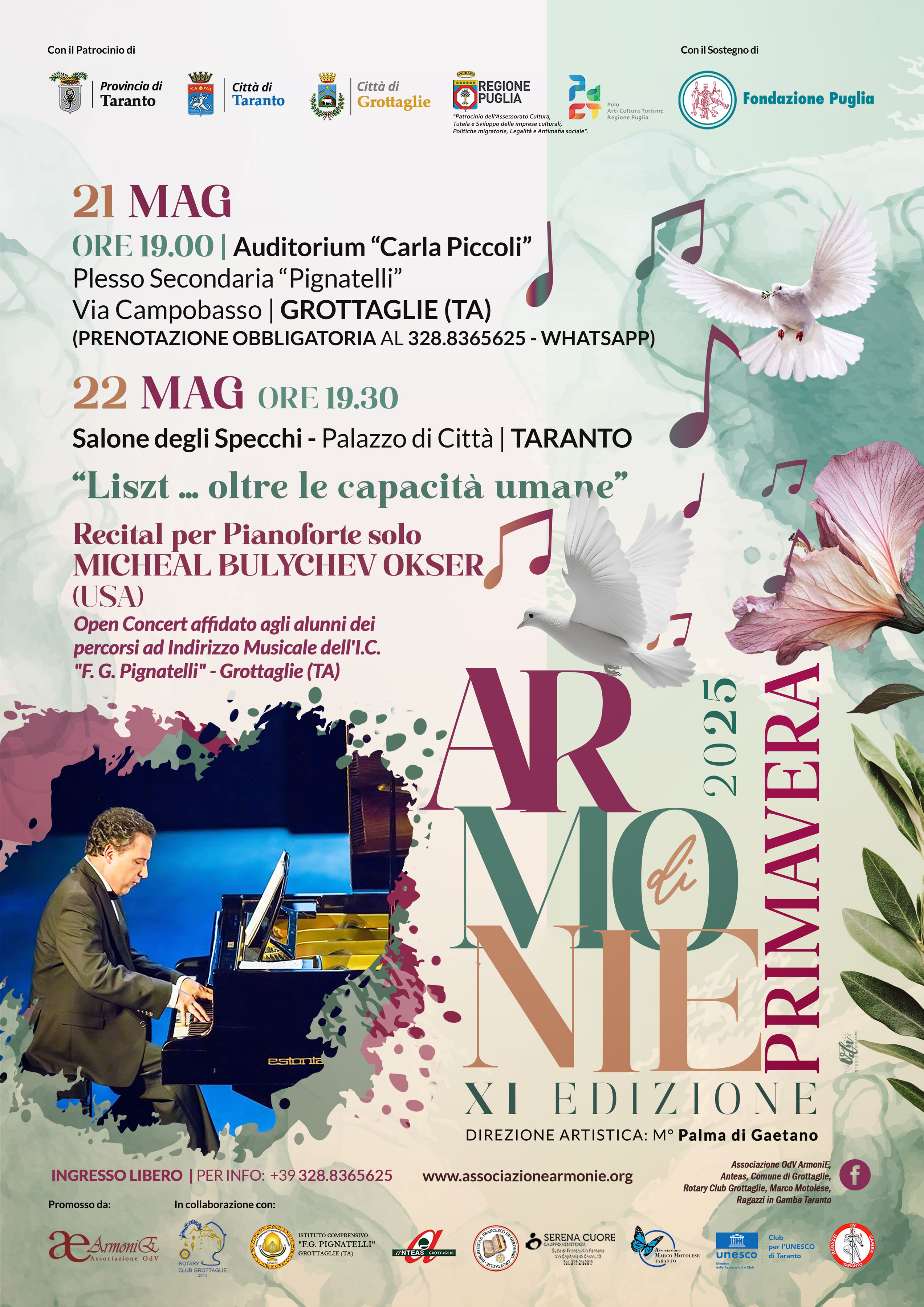 Entrambi i concerti vedranno il coinvolgimento degli alunni dei Percorsi ad Indirizzo Musicale dell’I.C. “F. G. Pignatelli” di Grottaglie.