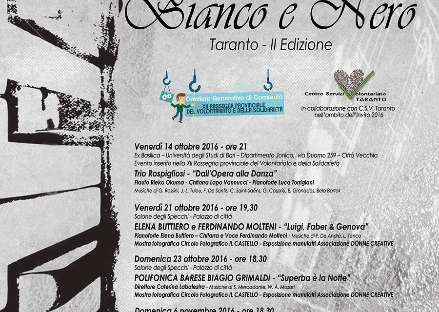 Si conclude giovedì 10 novembre alle ore 19:00 presso il Salone degli Specchi di Palazzo di Città in piazza Municipio, 6 a Taranto, la rassegna ArmoniE in Bianco e Nero 2016 – II edizione.
