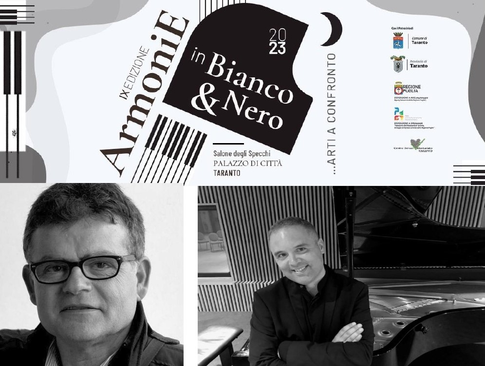 Domenica 19 novembre alle ore 18.30 presso il Salone degli Specchi – Palazzo di Città a Taranto, quarto appuntamento della Rassegna ArmoniE in Bianco & Nero IX edizione…Arti a Confronto, promossa da Associazione ArmoniE OdV con il patrocinio del Comune di Taranto, della Provincia di Taranto, del CSV Taranto ETS e della Regione Puglia (“Patrocinio dell’Assessore al Turismo, Sviluppo e impresa turistica della Regione Puglia” e in collaborazione con: