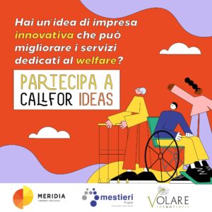 Il Consorzio Meridia, attivo nella progettazione di servizi socio-educativi, nel promuovere start-up di imprese sociali e potenziare le competenze professionali, per il suo 25esimo compleanno ha indetto un concorso per raccogliere progetti d’impresa che coniughino innovazione tecnologica e welfare.