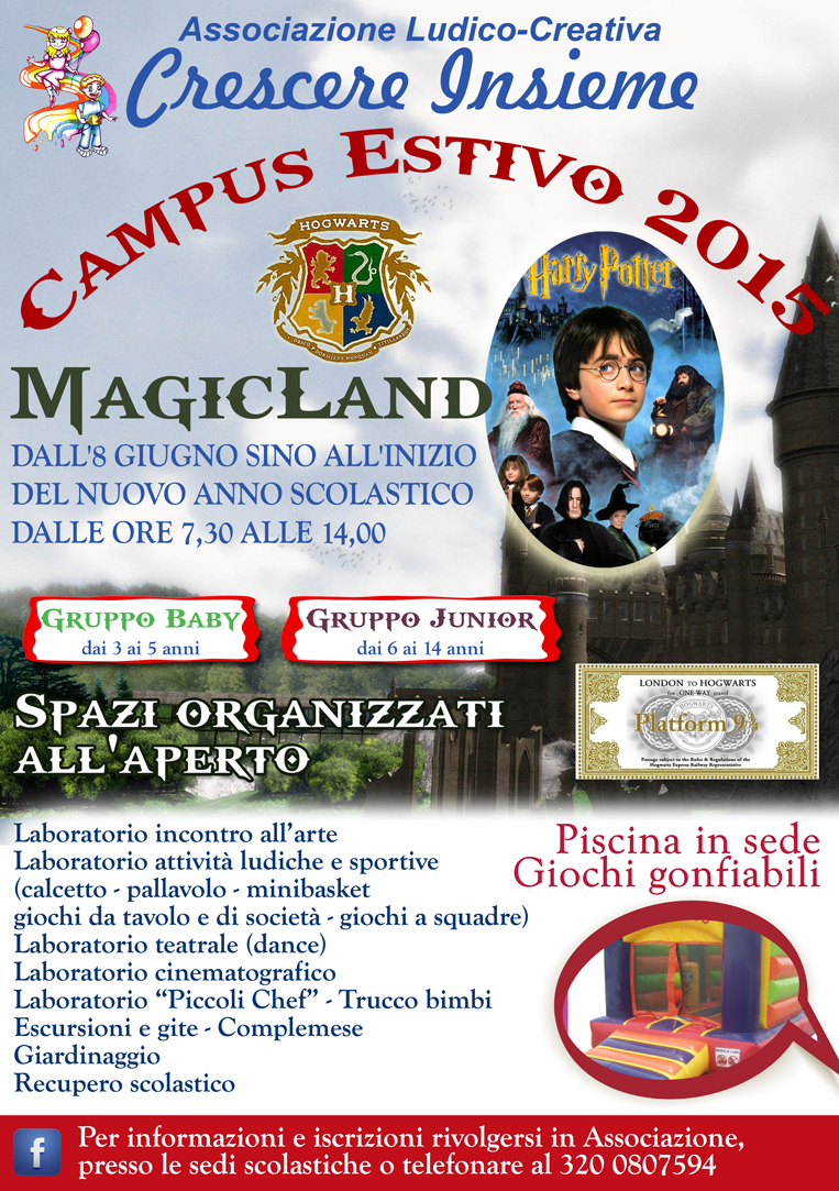 E’ partito lo scorso 8 giugno e proseguirà fino all’inizio del nuovo anno scolastico il Campus Estivo 2015 organizzato dall’Associazione Ludico-Creativa Crescere Insieme.