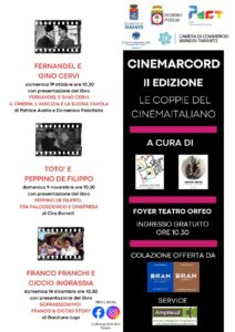 L’APS La Bottega delle idee ETS in collaborazione con il Cinema Teatro Orfeo presenta CINEMARCORD – II edizione; protagoniste le coppie del cinema italiano raccontate attraverso le immagini e analizzate dalla critica.