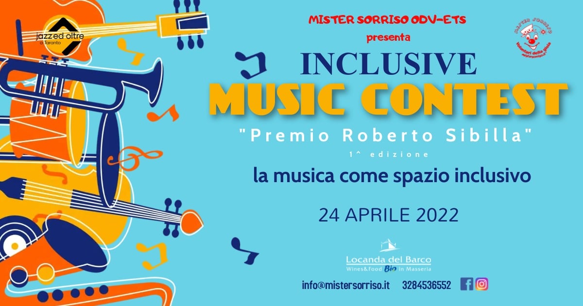 L’associazione Mister Sorriso – Volontari della Gioia con la collaborazione della Tenuta del Barco di Pulsano organizza un CONTEST DI MUSICA INCLUSIVA rivolto a tutti gli artisti diversamente abili.