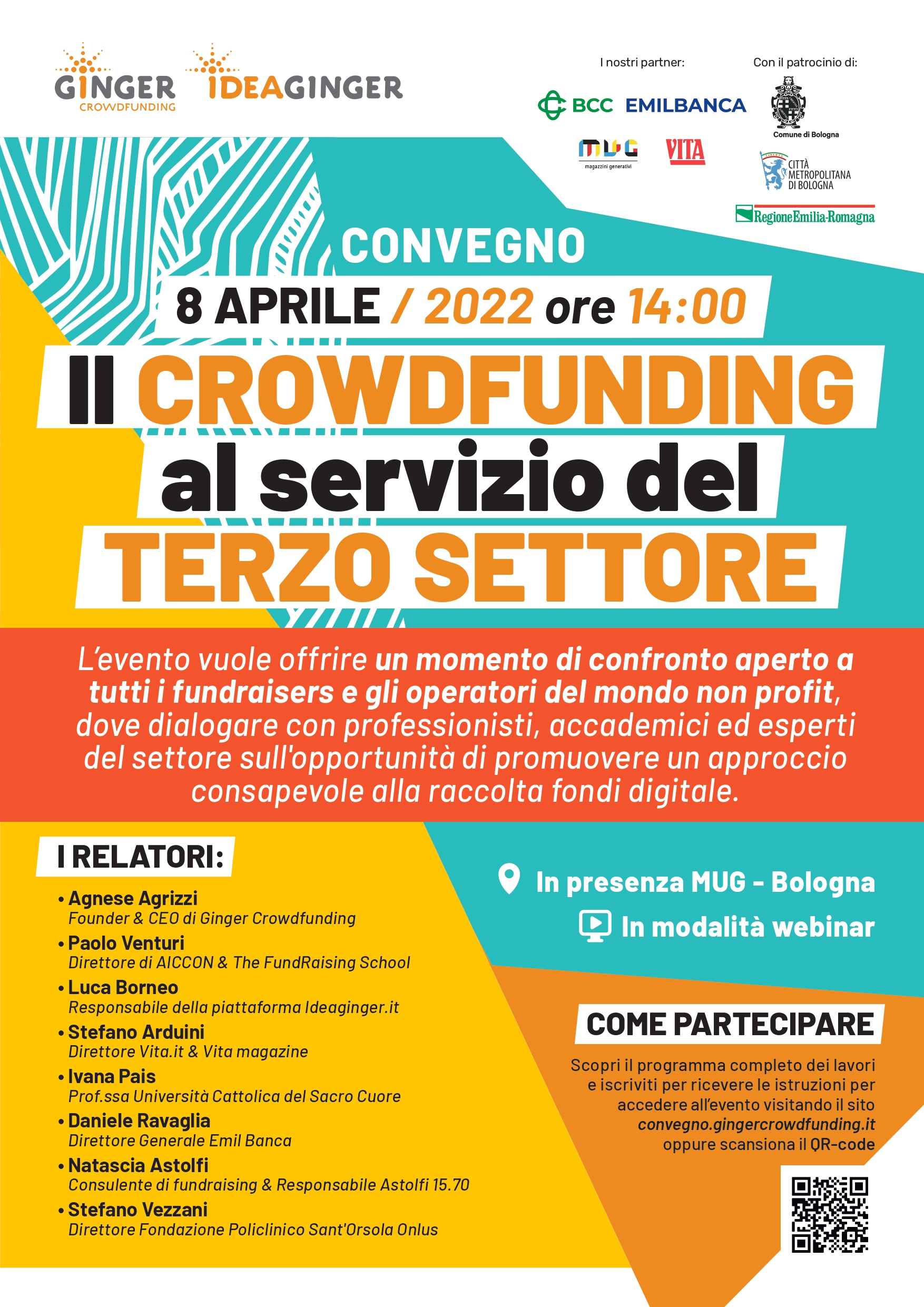 Si terrà venerdì 8 aprile alle 14:00 il Convegno al titolo Il crowdfunding al servizio del terzo settore organizzato Ginger Crowfundig in partnership con Vita.it