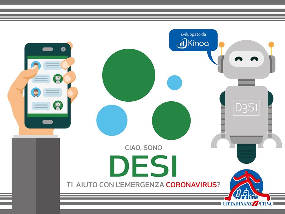Sul sito inoltre è a disposizione DESI, l’ assistente virtuale pronta ad aiutarvi e rispondere alle vostre domande su questa emergenza.