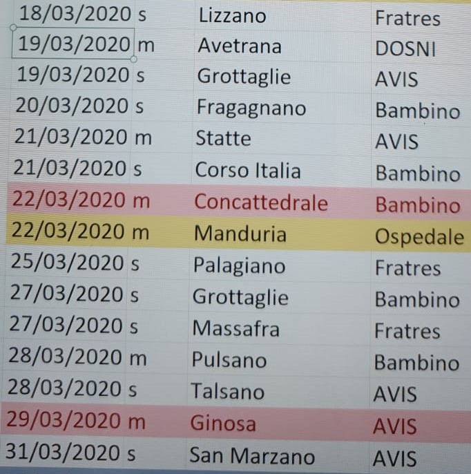 Il Ministero della Sanità sul sito ufficiale fa sapere che la raccolta di sangue continua anche dopo le misure adottate dal Governo per ridurre la diffusione del nuovo coronavirus, e la donazione del sangue e degli emocomponenti può essere considerata inclusa tra le “situazioni di necessità” di cui al D.P.C.M; di conseguenza possono ritenersi consentiti gli spostamenti dei donatori che si recano presso le sedi di raccolta pubbliche e associative.
