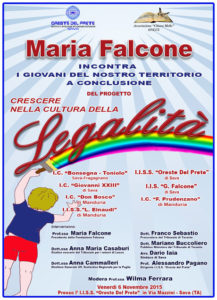 L’incontro con Maria Falcone ricade in uno dei progetti più complessi realizzati dall’Associazione “Chiara Melle” onlus in collaborazione con tutte le scuole del territorio, CRESCERE NELLA CULTURA DELLA LEGALITA’, la giornata del 6 novembre rappresenta, quindi, il momento in cui gli scopi di questo progetto si concretizzeranno nella testimonianza della sorella del giudice.