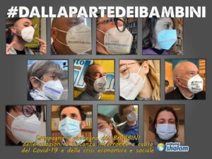 Per contribuire alla campagna di raccolta fondi basta condividere una nostra foto con la mascherina con scritto #dalla partedeibambini e dare un contributo libero a partire da 5€, cliccando su https://www.movimento-shalom.org/cosa-facciamo/dalla-parte-dei-bambini/