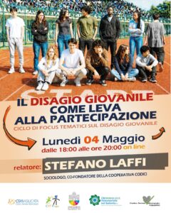 Relatore dell’evento sarà Stefano Laffi, sociologo, ricercatore, scrittore e fondatore della cooperativa “Codici”, che da tempo si occupa di progetti di partecipazione e protagonismo giovanile.
