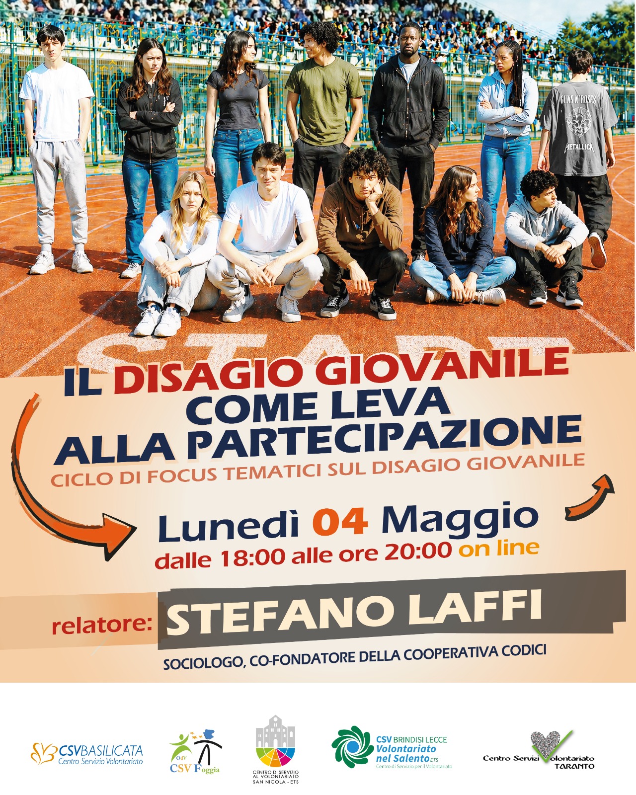 Lunedì 4 maggio i Csv di Puglia e Basilicata organizzano il primo appuntamento di un ciclo di tre focus tematici dal titolo Il disagio giovanile come leva alla partecipazione dedicato all’approfondimento del disagio giovanile, un’azione congiunta che mira a rafforzare l’accoglienza e il coinvolgimento dei giovani nei percorsi di promozione del volontariato.