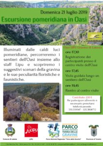 Domenica 21 luglio alle ore 17.30, nuova escursione pomeridiana nell’ Oasi LIPU Gravina di Laterza.
