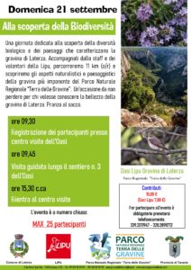 Nell’ambito del programma Eventi-Natura 2025 dell’Oasi Lipu Gravina di Laterza, domenica 21 settembre alle ore 09.30, si terrà l’evento Alla scoperta della Biodiversità.