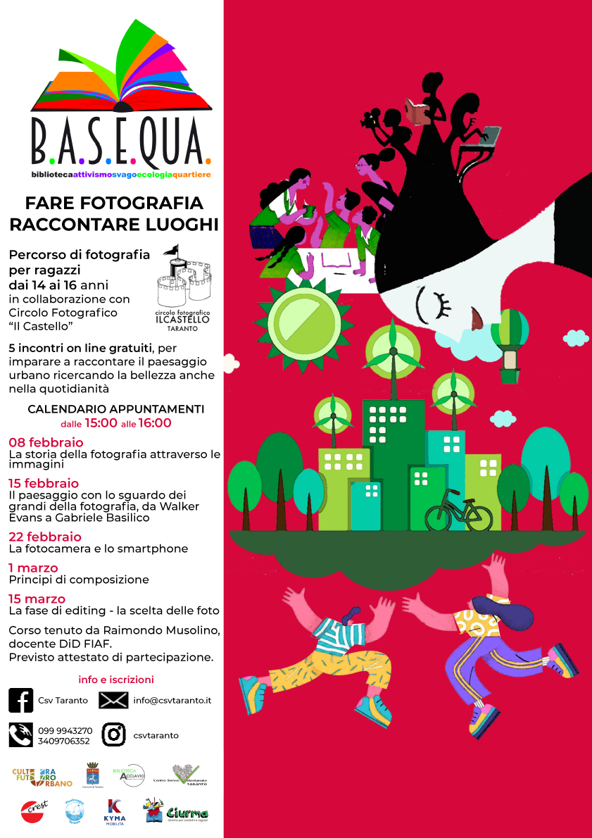 Il C.S.V. Taranto, in collaborazione con il Circolo Fotografico Il Castello, organizza il percorso di fotografia per ragazz* dai 14 ai 16 anni “Fare fotografia – raccontare luoghi”.