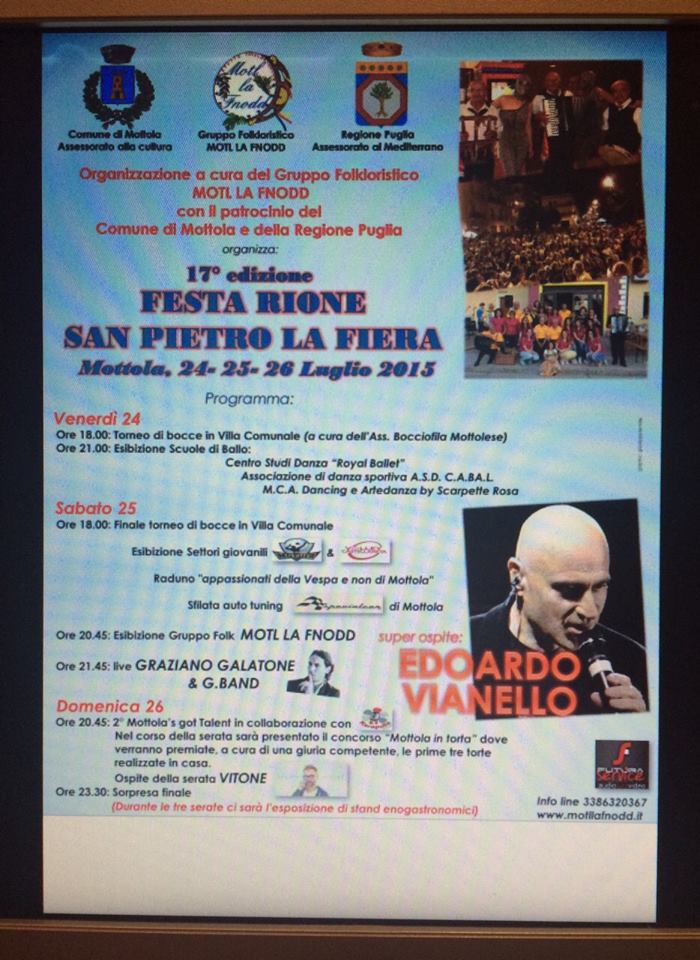 Torna a Mottola la 17 Edizione della Festa Rione San Pietro La Fiera, la grande festa dedicata allo sport, folklore, enogastonomia e alla musica anni ’60 organizzata dall’Associazione Mott0l la ‘Fnodd.