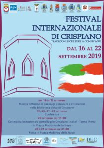 provincia di Taranto presso la Sala Monfredi – Cittadella delle Imprese (Camera di Commercio) di Taranto; - Venerdì 20 settembre – ore 11.00: Cerimonia istituzionale di gemellaggio Crispiano (Italia) – Tarma (Perù) in Piazza Madonna della neve a Crispiano, alle ore 21.00 Festa musicale in Piazza Madonna della neve a Crispiano;