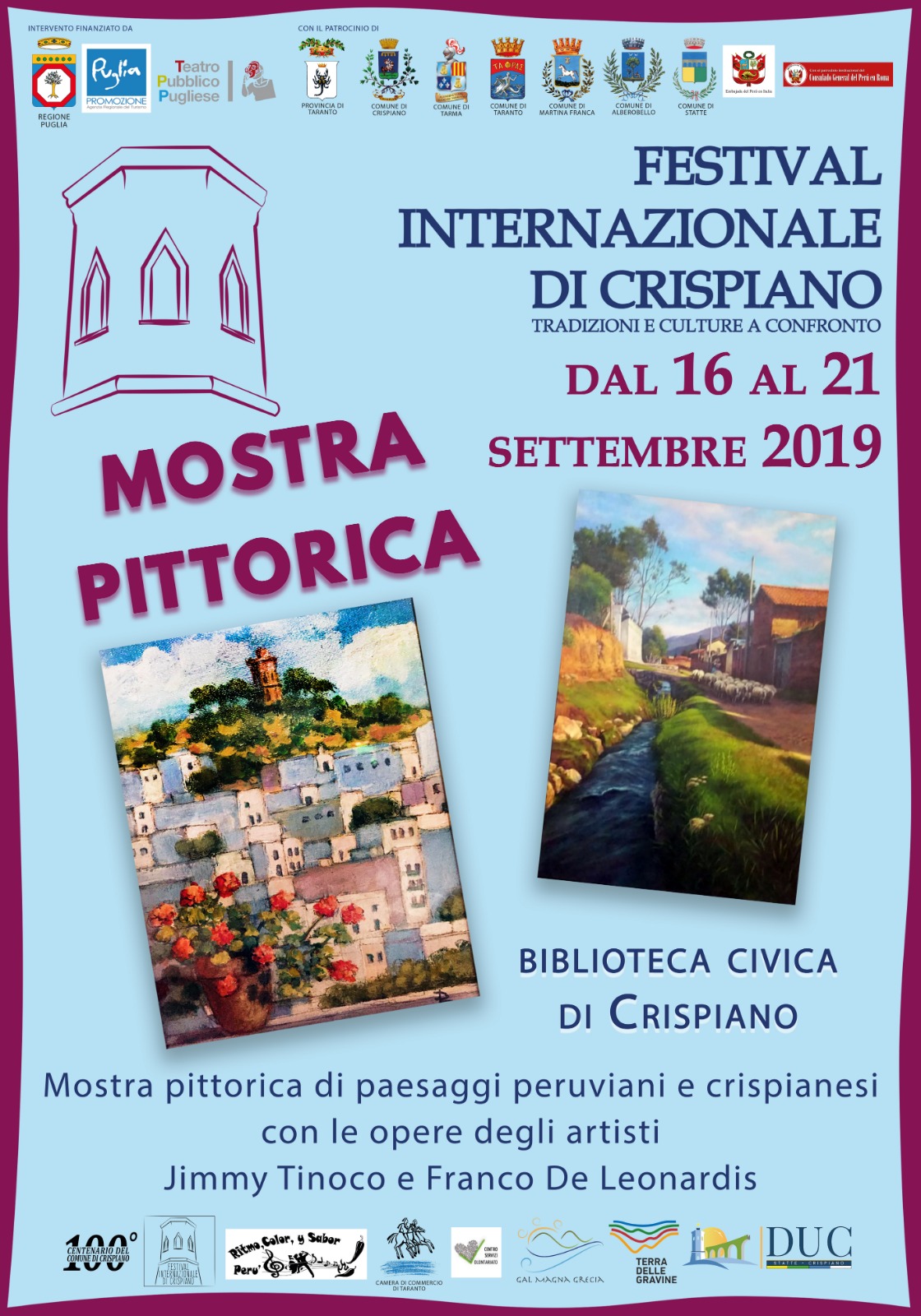 - Dal 16 al 21 settembre: Mostra pittorica di paesaggi peruviani e crispianesi con le opere dei pittori Jimmy Tinoco e Franco De Leonardis presso la Biblioteca civica di Crispiano;