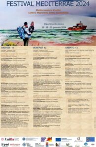 Da giovedì 11 gennaio a sabato 13 gennaio 2024 si svolgerà a Taranto il Festival Mediterrae 2024 – Mediterraneità e confini: cultura, migrazioni, diritti, sostenibilità.