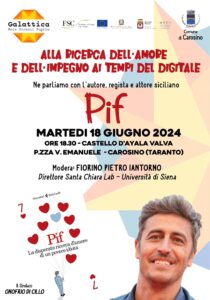 Si parlerà della ricerca dell’amore e dell’impegno ai tempi del digitale nel corso dell’incontro con PIF, autore, regista e attore siciliano, che si terrà martedì 18 giugno p.v. alle ore 18:30 nel Castello D’Ayala Valva in P.zza V. Emanuele a Carosino.