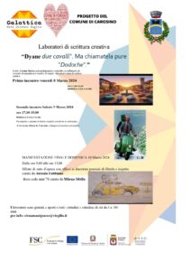 Nell’ambito del del progetto Galattica – Rete Giovani Puglia nodo del Comune di Carosino l’Associazione Donne in Fermento promuove un ciclo di laboratori di scrittura creativa dal titolo Dyane due cavalli. Ma chiamatela pure “Dodoche”.