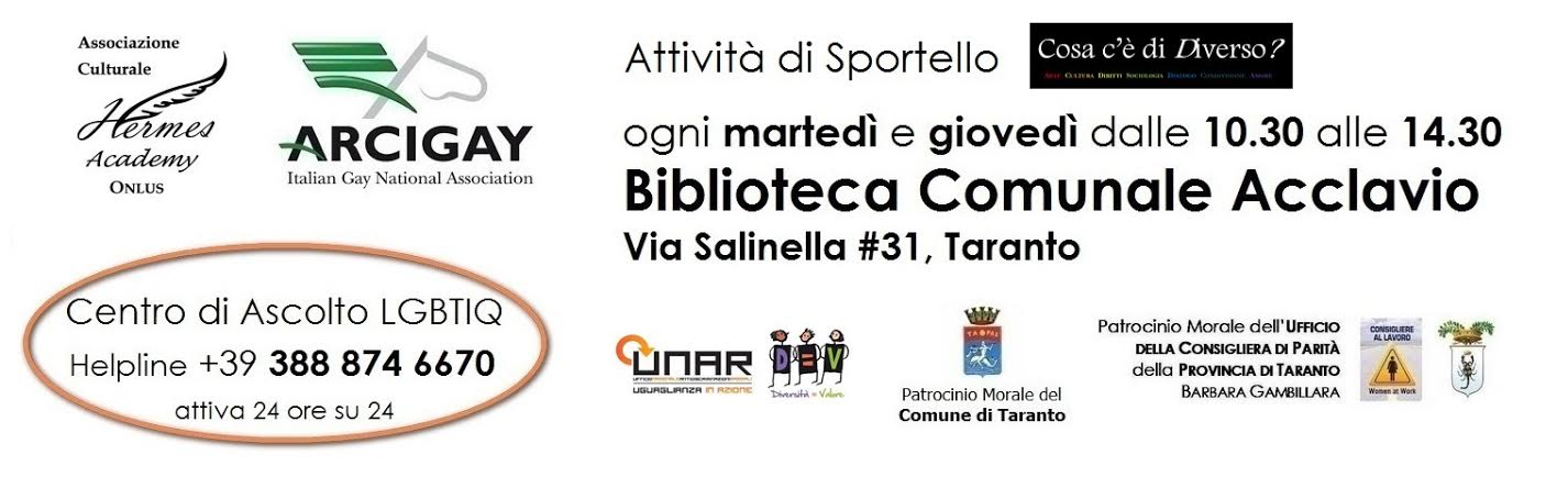 Per domenica 30 novembre l’appuntamento con gli attivisti di Arcigay è dalle ore 10.00 alle ore 13.00 e dalle ore 17.00 alle ore 23.00 presso Piazza Garibaldi, che sarà animata dai performer di Strambopoli – La Città degli Artisti e dagli allievi dei laboratori di arti sceniche, visive e letterarie promossi dall’Associazione Culturale Hermes Academy Onlus.