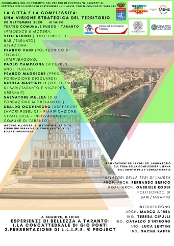 Dopo l’evento dello scorso 12 settembre in cui si è discusso del Tecnopolo Mediterraneo per lo sviluppo sostenibile a Taranto, il Centro di Cultura per lo Sviluppo “Giuseppe Lazzati” A.P.S. organizza altri incontri che rientrano nell’ambito del Festival della Sostenibilità 2020, promosso dall’ASviS su tutto il territorio nazionale e che ha preso il via lo scorso 22 settembre con un evento inaugurale.