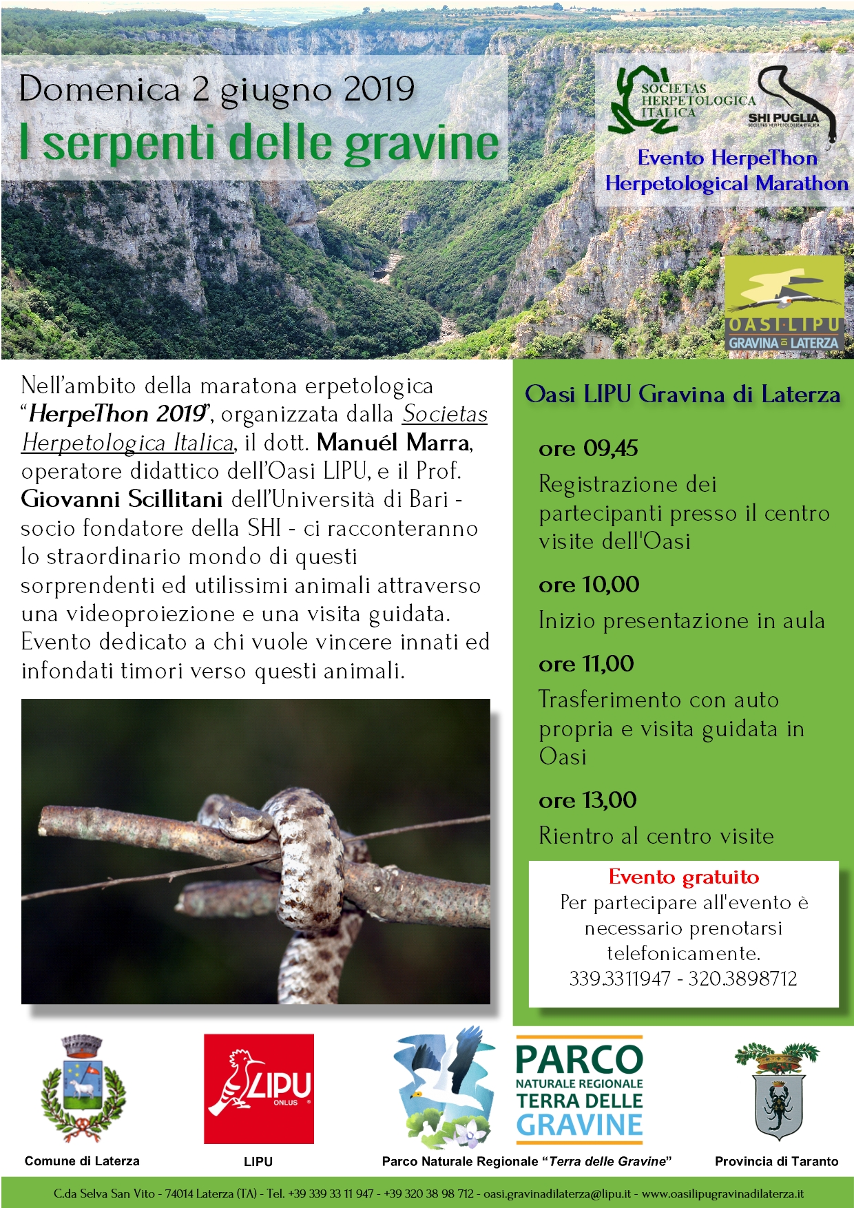 L’evento rientra nella maratona erpetologica HerpeThon 2019, organizzata dalla Societas Herpetologica Italica.