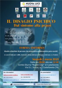 Nell’ambito del servizio di integrazione scolastica/assistenza specialistica svolto dalla Cooperativa “Nuova Luce” di Taranto all’interno dell’I.I.S.S. “Mauro Perrone” di Castellaneta, dell’I.I.S.S. “Orazio Flacco” di Castellaneta e dell’ I.I.S.S. “Bellisario – Sforza” di Ginosa-Palagiano-Palagianello, destinato ad alcuni alunni con disabilità ed in collaborazione con il Centro Diurno “Nuova Luce” di Castellaneta, la Cooperativa “Nuova Luce” di Taranto intende organizzare un incontro formativo-informativo.