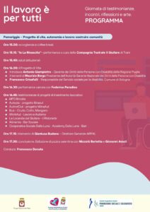 Sarà una giornata di testimonianze di progetti di inserimento lavorativo, riflessioni e arte.