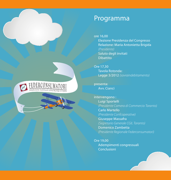Si terrà martedì 12 maggio p.v. alle ore 16:00 presso il Salone di Rappresentanza della Provincia di Taranto in Via Anfiteatro, 4 la IV Assemblea Congressuale degli iscritti Federconsumatori organizzata con il Patrocinio del C.S.V. Taranto dall’Associazione Federconsumatori.