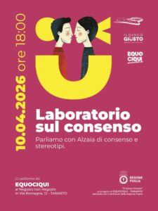 Questo ultimo laboratorio, previsto per venerdì 10 aprile alle ore 18:00, sarà lo strumento per portare la consapevolezza acquisita nelle nostre famiglie e nei nostri luoghi di vita. Il consenso non è un traguardo, ma una pratica di libertà. Il ᑎEGOᘔIO ᑎOᑎ ᑎEGOᘔIO di Equociqui torna a essere uno spazio di sorellanza, confronto e cura del mondo che vogliamo costruire.
