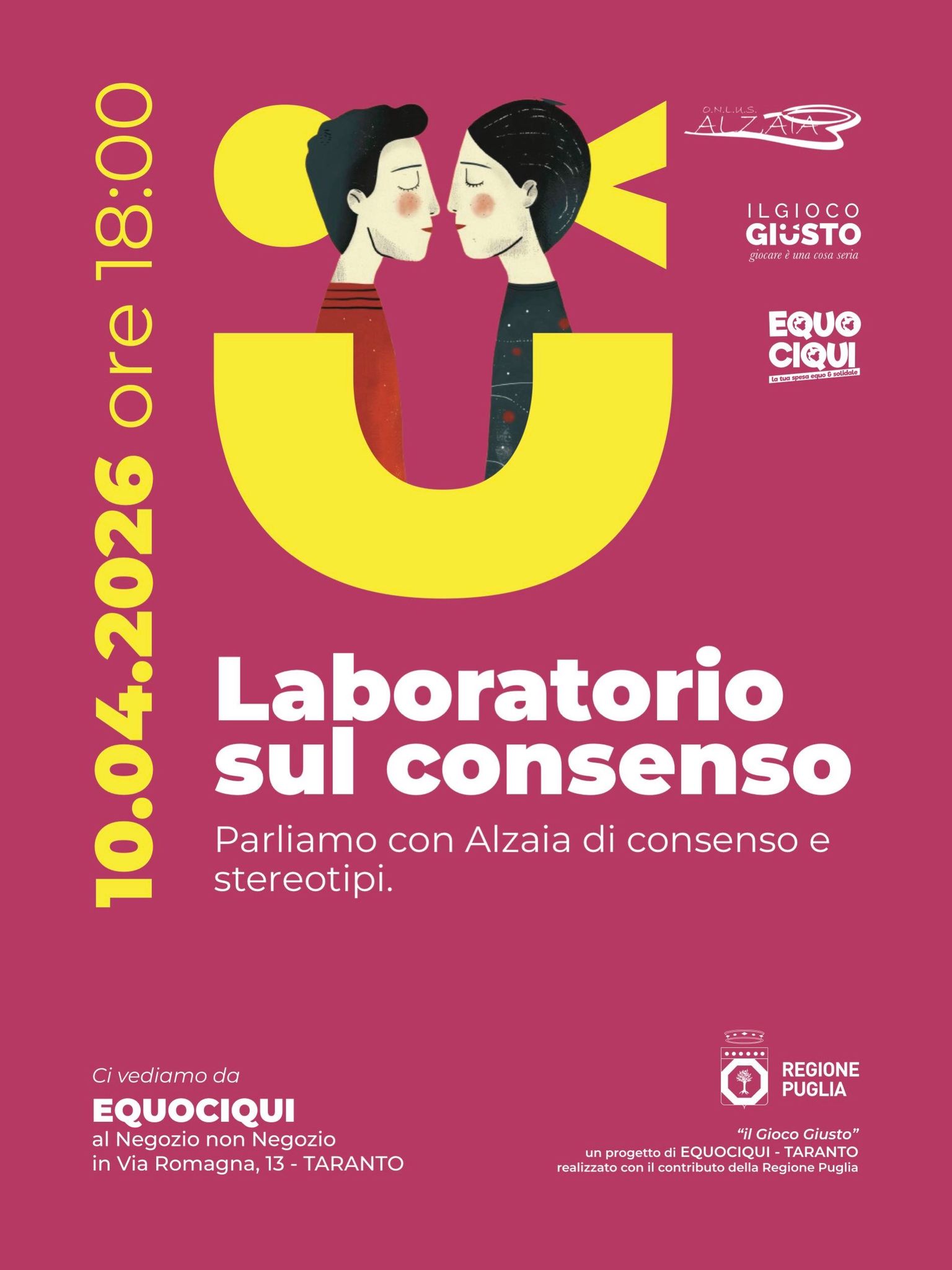Insieme alle professioniste dell’Associazione Alzàia Onlus, si chiuderà il cerchio del consenso e degli stereotipi nel progetto “Iᒪ GIOᑕO GIᑌᔕTO”. Sarà un momento per tirare le fila, fare sintesi e capire concretamente come ognunə di noi può diventare parte attiva di una cultura della relazione paritaria e autentica.