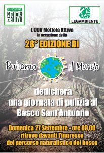 Anche l’Associazione Mottola Attiva partecipa all’iniziativa nella giornata di domenica 27 con una giornata di rimozione dei rifiuti abbandonati nel Bosco di Sant’Antuono a Mottola.