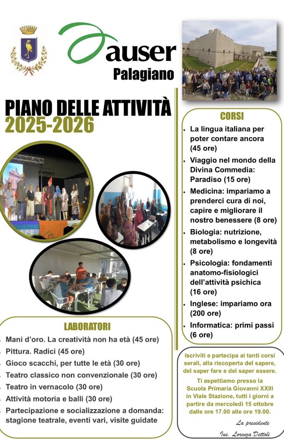 Presentato il nuovo calendario delle attività dell’anno scolastico 2025-2026 dell’Auser UTEP Palagiano APS, un calendario ricco e articolato.