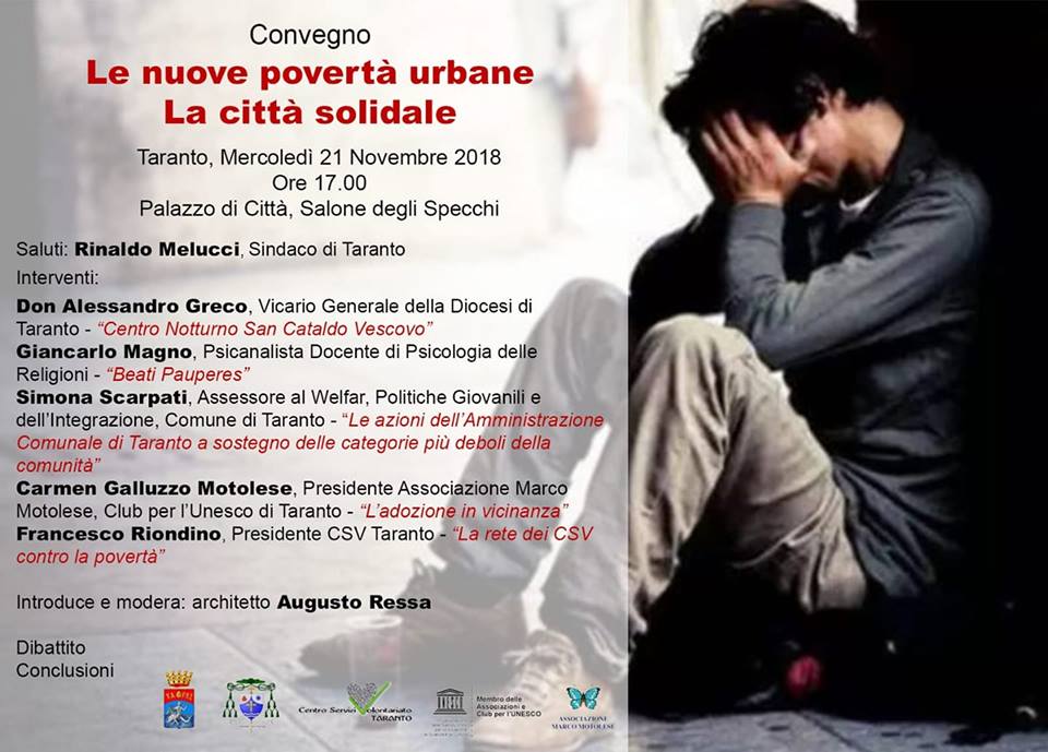Si terrà questo pomeriggio, mercoledì 21 novembre, alle ore 17:00 nel Salone degli Specchi di Palazzo di Città il Convegno dal titolo Le nuove povertà urbane, la città solidale.