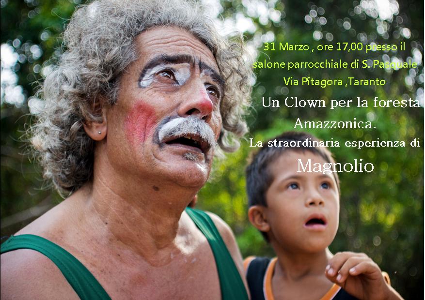 Paulo Roberto Sposito de Oliveira conosciuto come “Magnolio” è un clown che lavora in una delle più importanti organizzazioni non governative che operano in difesa della foresta Amazzonia e dei suoi popoli. L’Ong si chiama Saude e Alegriaed ha sede a Santarem nello stato federale del Parà, nel cuore dell’Amazzonia. Era un avvocato di San Paolo che ha deciso in una fase della sua vita di abbandonare la sua attività professionale per diventare un educatore nelle favelas di San Paolo. Dopo alcuni anni si trasferisce in Amazzonia e inizia la sua battaglia in difesa della foresta amazzonica e dei popoli indigeni. Con il suo circo gira la foresta insegnando alle popolazioni le buone pratiche per non contrarre malattie,coltivare e vendere prodotti della foresta senza distruggerla .