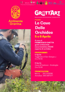 Prosegue il progetto “Ambiente Gravina” dell’Associazione Grott’Art APS di Grottaglie che propone Le Cave delle Orchidee, due escursioni per scoprire il meraviglioso mondo delle orchidee selvatiche, ovvero quelle specie che, con i loro colori affascinanti e forme uniche, crescono spontaneamente in natura.