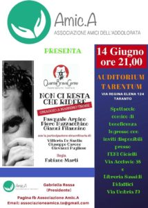 L’associazione Amic.A organizza per questa sera, venerdì 14 giugno il consueto spettacolo di beneficenza, finalizzato alla raccolti fondi per i bambini delle famiglie che assiste con cadenza mensile.