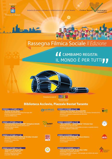 Tutte le proiezioni previste nell’ambito della Rassegna Filmica, sono in collaborazione con l’Associazione Buena Vision Social Club – BUVISC – avverrà presso la Biblioteca Acclavio in Piazzale Bestat a Taranto e l’ingresso è libero.