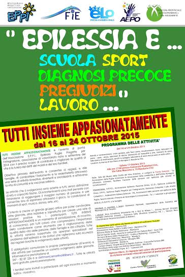 Si tratta di una “vacanza” in cui, dal 16 al 24 ottobre, persone da 0 a cento anni con problemi di epilessia e i loro parenti possono socializzare in un ambiente protetto; tutte le attività sono gratuite e si tengono tra Manduria e San Pietro in Bevagna.