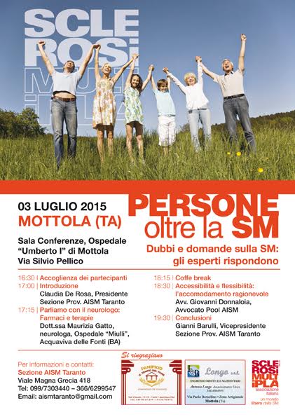 Per informazioni contattare la sezione AISM Taranto ai numeri:099/730.34.40 – 366/629.95.47 – email: aismtaranto@gmail.com