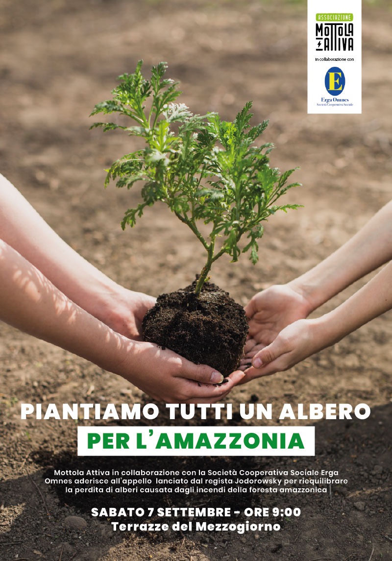 L’Associazione Mottola Attiva aderisce all’appello lanciato dal regista Jodorowsky di piantare in tutto il mondo alberi per riequilibrare la perdita di vegetazione causata dagli incendi della foresta amazzonica.