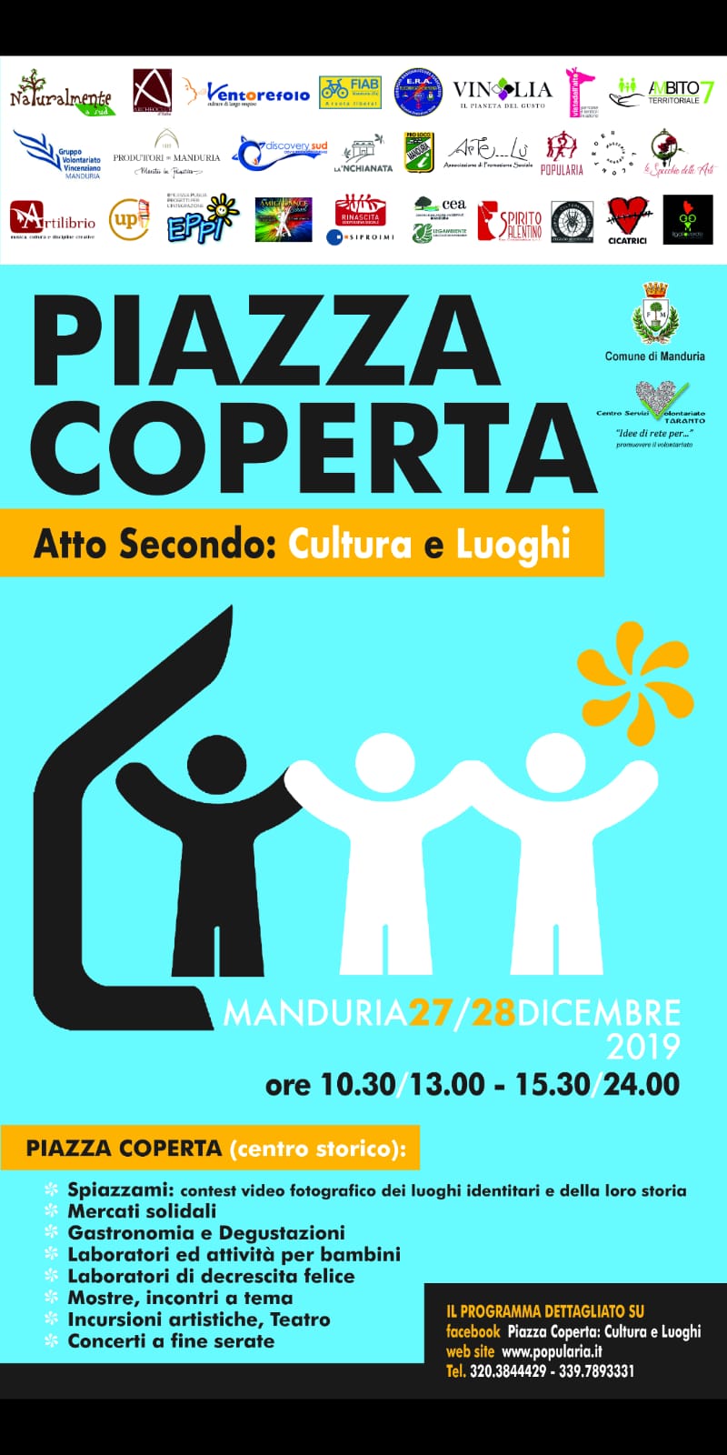 Da qui nasce il progetto di “recupero urbano e sociale” della vecchio Mercato Coperto di Manduria “Piazza Coperta, atto secondo: cultura e luoghi”, realizzato con la collaborazione del C.S.V. Taranto nell’ambito delle Idee di rete per… promuovere il volontariato.