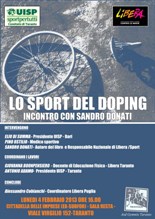 Lunedi 4 febbraio p.v. l’ Associazione LIBERA di Taranto presenta il libro Lo sport del doping di Sandro Donati, maestro dello sport, ex Dirigente del CONI, oggi consulente Wada (Agenzia Mondiale Antidoping) e responsabile nazionale di Libera Sport.